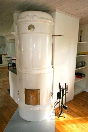 Stuga Linnebråten har golvvärme överallt. Här finns även TV, tvättmaskin och en vedeldad spis.