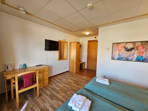 Här finns en kabel-tv och ett eget badrum.