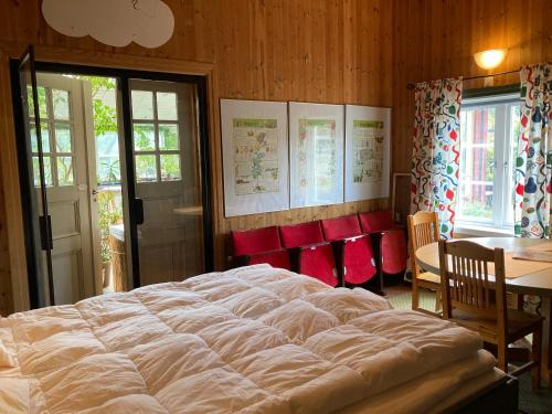 Situated by Lake Edesjön, the eco-friendly STF Växhuset Vandrarhem offers unique cake-shaped rooms with lake views. Canoes and bicycles can be borrowed for free on site. Söderhamn town centre is 20 km away. All rooms at STF Växhuset have wooden interiors and mosquito nets. Each has access to shared bathroom facilities with a sun-heated shower and a composting toilet. The shared kitchenette features cooking hobs, a fridge and a dining area. Sandwiches and coffee are served at the summer café. Breakfast and lunch packages are available on request. Swimming is possible from a private jetty by the lake. The on-site shop sells ceramic products, books and hot drinks. Children will appreciate the playground with swings and a sand box. Bollnäs Golf Club is a 15-minute drive away. Bollnäs town centre is 25 km from the property.